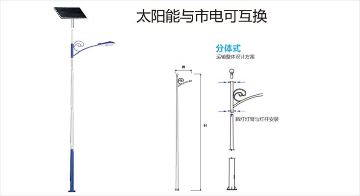 灯杆:优质钢材,热镀锌处理,灯体表面喷塑(颜色可定制)