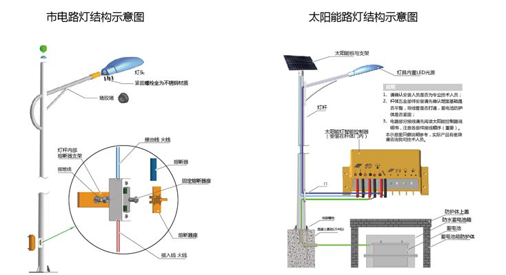 灯杆:优质钢材,热镀锌处理,灯体表面喷塑(颜色可定制)