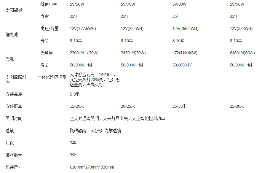 连续照明时间:6-12小时 防护等级:IP65 光源类型:LED 额定功率:20-120(W) 类型:太阳能路灯 电压:12(V) 外形尺寸:5000-12000(mm) 寿命:50,000(h)